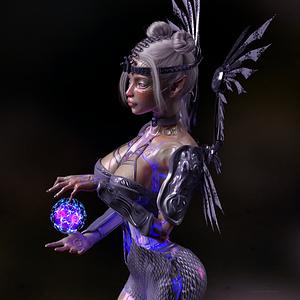 Digital artwork-render in 4K of a Cyborg Elf 3D avatar made manually in professional 3D modeling programs.