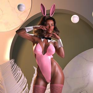 Digital artwork-render in 4K of a Playb0y Bunny 3D avatar made manually in professional 3D modeling programs, by official Playb0y artsit.